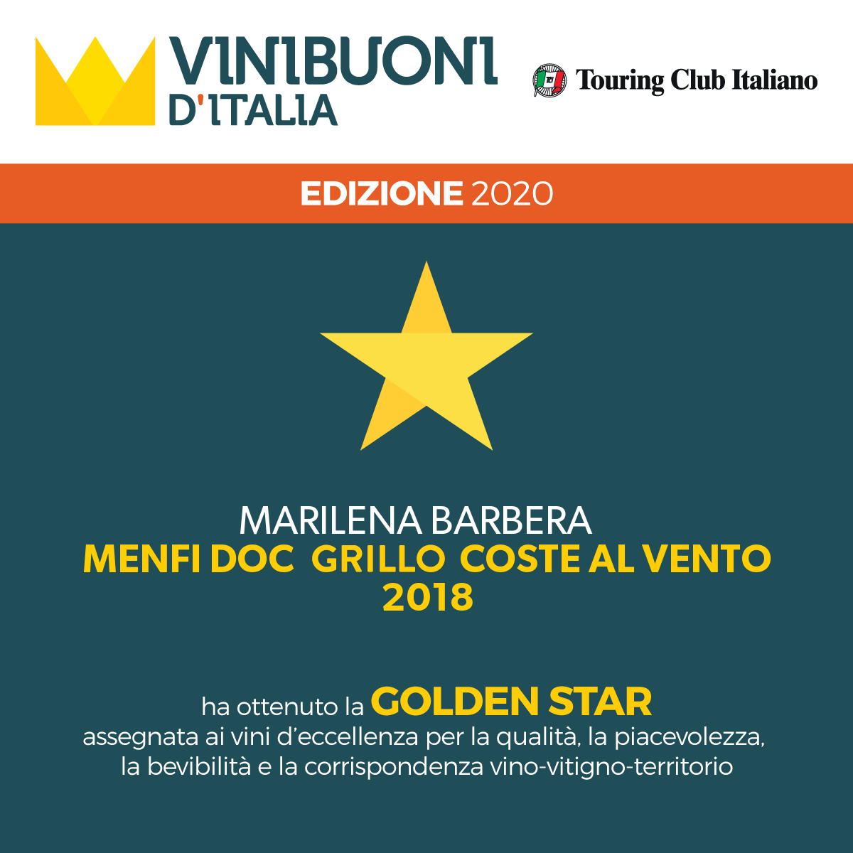 Grande soddisfazione mi ha regalato, ancora una volta, la Guida ai Vini Buoni d'Italia edita dal Touring Club per il 2020, con il riconoscimento della Golden Star per Coste al Vento 2018.